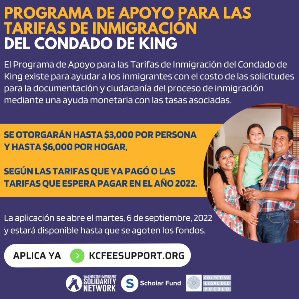Fondo 2: El programa de Apoyo a las Tarifas de Inmigración del Condado de King está aquí para ayudar a los inmigrantes del Condado de King a pagar las tarifas asociadas con el proceso de inmigración.