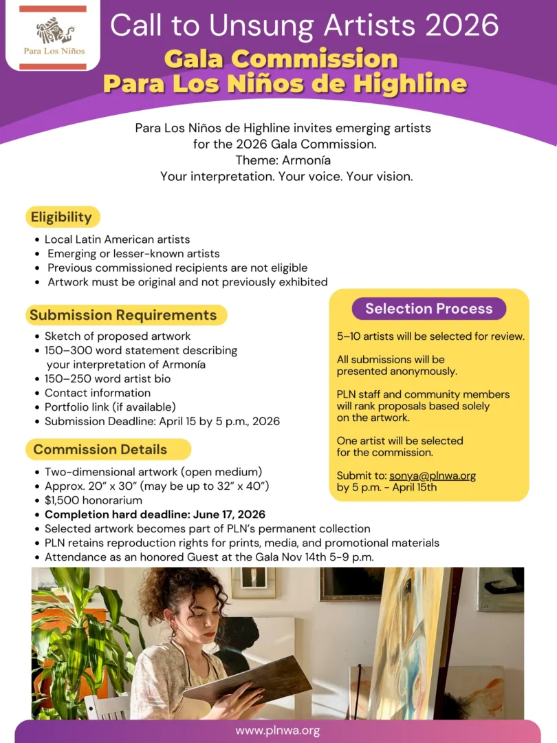 Please share this opportunity with talented artists you know! Find all the details below, or click here to learn more: https://plnwa.org/gala/#art-commission