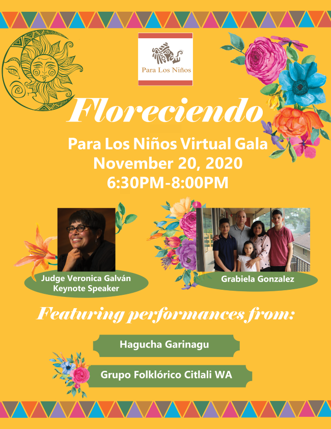 Para Los Niños is excited to announce out virtual gala,“Floreciendo,” on November 20, 2020 from 6:30 PM to 8:00 PM via Zoom. For the safety of our staff and our community, we are hosting our annual fundraiser online. While it may look different from previous years, with your support, we can create that same sense of community that has continually inspired and engaged people from all over King County.