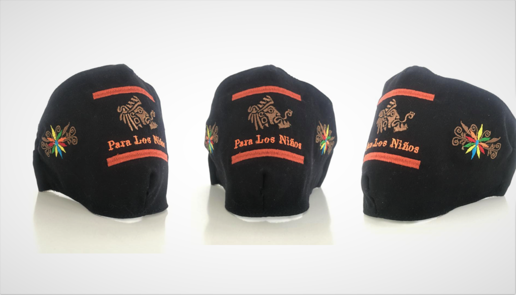 By donating $12 on our souvenirs page, you will receive a Limited edition artisanal face mask, embroidered with the Para Los Niños logo and colorful flowers on both sides.