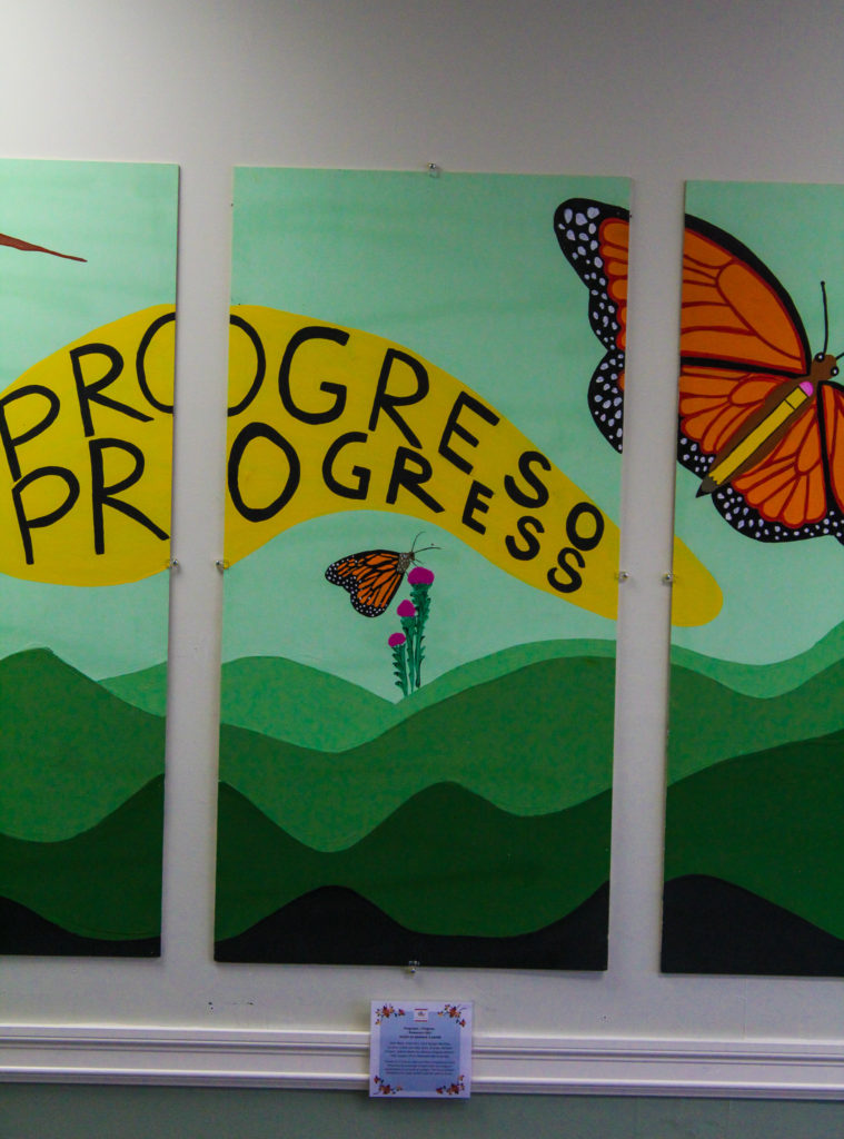 Bienvenido de nuevo a la presentación virtual de nuestros 4 nuevos murales. ¡Tenemos nuevos murales! Ven a visitarlos a cualquier hora del día (3 de ellos se encuentran en el exterior de las oficinas). El arte es de gran importancia para nuestra comunidad y este verano hemos podido crear bellísimas obras en nuestra oficina de Para Los Niños. Nuestra cuarta presentación virtual es de los artistas Edith Mejía, Elmer Ruiz, Erica Refugio Martínez, Kevin Ocampo Michelle Delgado, Sakina Idares-ha, Vanessa Delgado-Alvarez – With support from Amaranta Ibarra-Sandys.