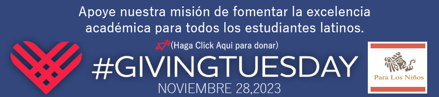 Únase a nosotros en Giving Tuesday: este Giving Tuesday, una campaña internacional que une a comunidades de todo el mundo, lo invitamos a ser parte de nuestra misión. Juntos, fomentaremos el éxito académico de cada estudiante latino a través de la participación de los padres y la comunidad. ¡Únase a nuestra comunidad compartiendo nuestra causa y donando el martes 28 de Noviembre!