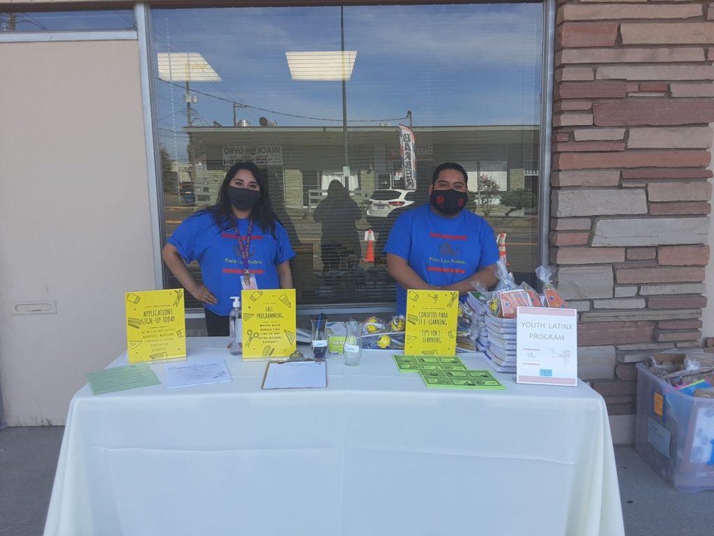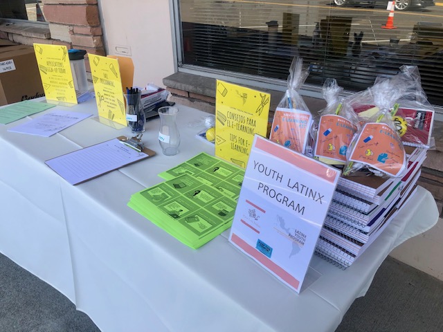 Latinx Youth Program table with our Youth Organizer, Josefina and our Operations Manager, Noe