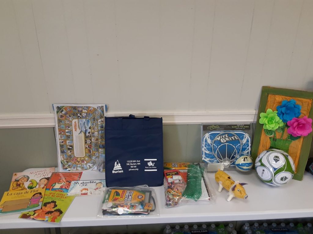 Durante este evento, proporcionamos a la comunidad latina de Highline útiles escolares y de arte, balones de fútbol de los Seattle Sounders, equipamiento deportivo y varios libros de diferentes escritores latinoamericanos. Además de esto, nuestras bolsas de regalo incluían juegos de mesa para toda la familia.