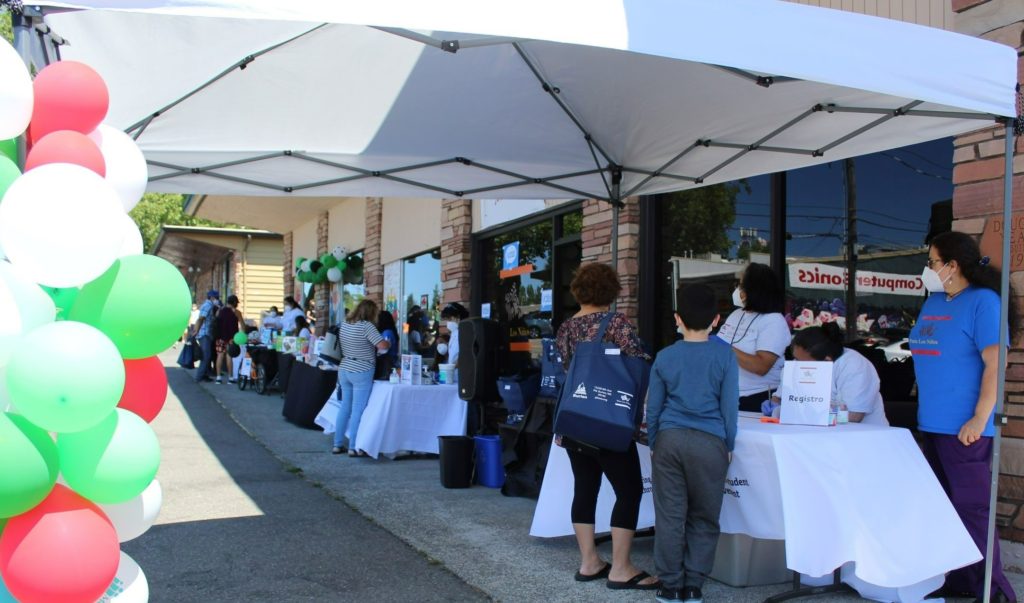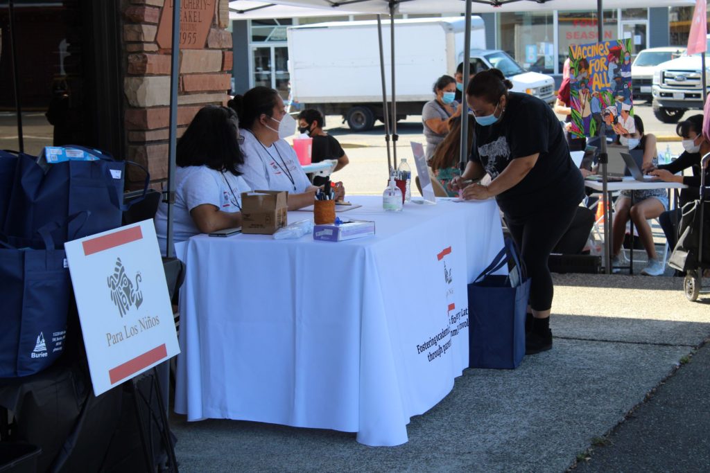 Las familias recibieron útiles escolares y artísticos, equipamiento deportivo y varios libros de diferentes escritores latinoamericanos. Además de esto, nuestras bolsas de regalo incluían juegos de mesa para toda la familia y paquetes de cortesía con productos de salud de Molina Healthcare. Durante el evento, las familias pudieron disfrutar de refrescos cortesía de Taquería Casa Mixteca, música salsa y participaron en el sorteo de las 15 bicicletas donadas por Bike Works. Nuestros aliados de Salud Pública – Seattle y el Condado de King se unieron a nuestro evento y ofrecieron vacunas COVID-19 gratuitas (Pfizer, J&J, Moderna).